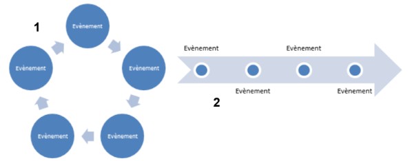 Je vous propose un petit exercice. Pour vous, lequel des deux schémas ci-dessous correspond le plus à la conception biblique sur le temps et l’histoire :