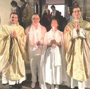 « Je tiens à remercier toutes les paroissiennes et tous les paroissiens pour la célébration de mon baptême dimanche dernier. Pour moi, ce fut un immense honneur et une immense joie d’avoir reçu ce saint sacrement de la part de don Louis-Marie. Je suis vraiment honoré de rejoindre cette belle famille et de poursuivre cette belle aventure avec vous tous ». Laurent